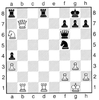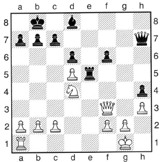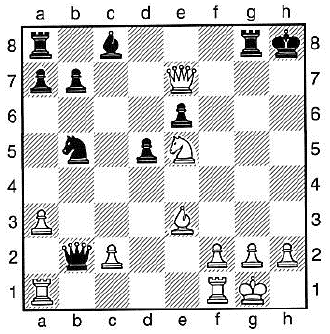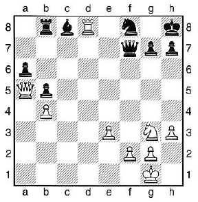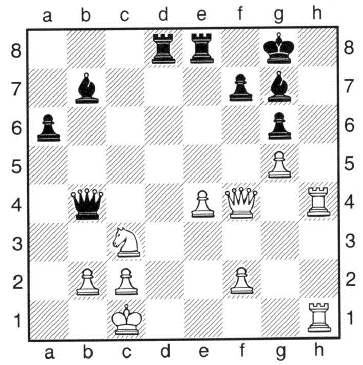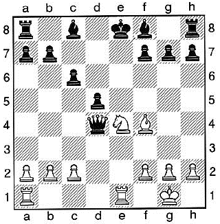 1. … – b x c6 2. D b3 + – K c8 3. d x c6 – …. und nichts hilft gegen: 4. D b7 ++ |