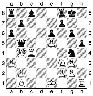 nötig für Schwarz wäre mit 1. – D xb4+. 2. T x b4 den Figurenverlust einzugestehen.